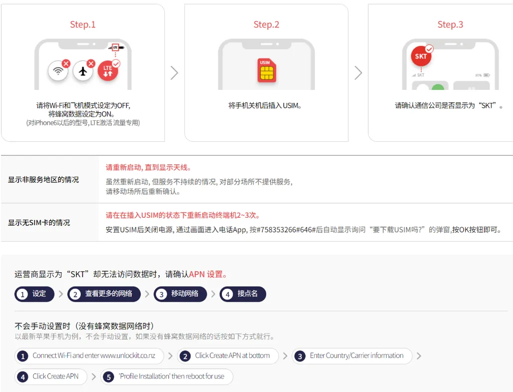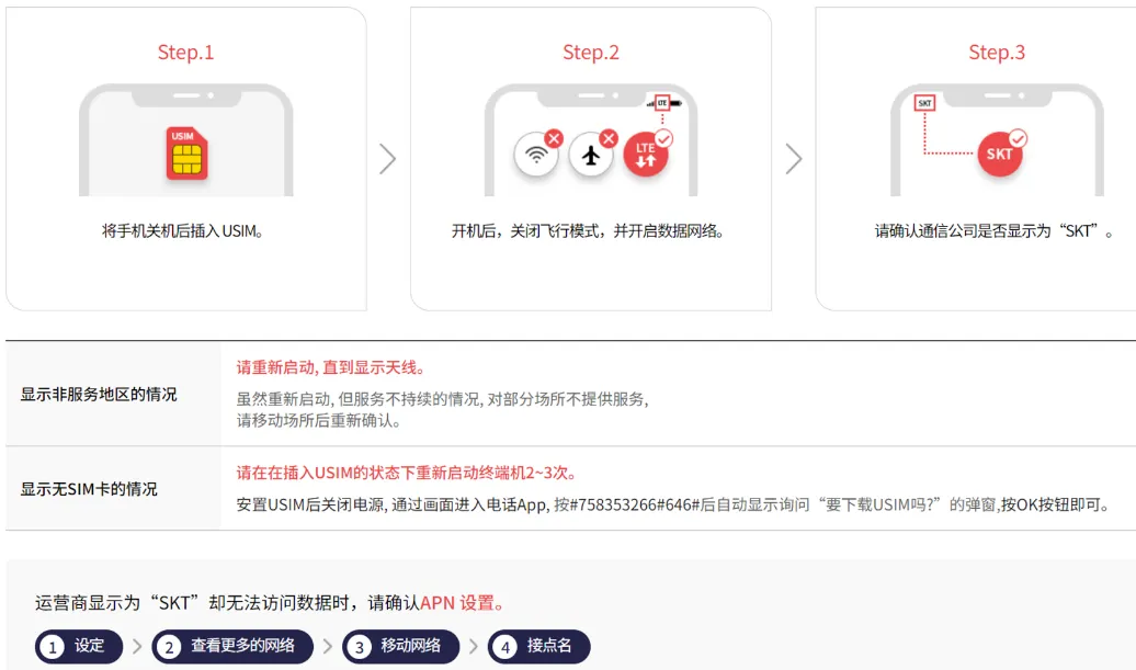 除数据外,还可以接收电话、短信。通过 SKT 充值服务,您可以拨打电话和发送短信。